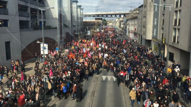 Başkent Paris'te Doğu Tren Garı'ndan Bastille Meydanı'na doğru yürüyen 35 bin demiryolu çalışanı, Nation Meydanı'nda toplanarak Bastille'e yürüyen 14 bin kamu çalışanıyla birleşti. Demiryolu çalışanlarının yürüyüşünde çıkan şiddet olayları nedeniyle polisin tazyikli su ve göz yaşartıcı gaz kullandığı, göstericilerin bir aracı yakarak çok sayıda işyerine zarar verdiği kaydedildi.