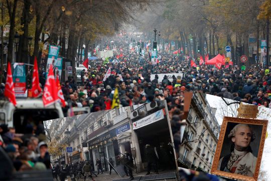 Fransa'daki gösterilere başkent Paris başta olmak üzere ülke genelinde yüzbinlerce kişi katıldı. Grev kapsamında hızlı trenlerin yüzde 90'ı ve Paris metrosunun çoğunluğuna erişim engellendi, yüzlerce uçuş iptal edildi ve okulların çoğu açılmadı. Fransa hava yolu şirketi Air France, Perşembe günkü iç hat uçuşlarının yüzde 30'unun iptal edildiğini açıkladı.Başkent Paris'te yaklaşık 250 bin kişinin katıldığı gösterilere polis biber gazıyla müdahale etti. Yerel medya, 6 bin polisin gösterilere müdahale ettiğini ve saat 22.00'a kadar 60 kişinin gözaltına alındığını duyurdu. Sarı yeleklilerin de katıldığı eylemlerin Pazartesi gününe kadar devam edeceği açıklandı.