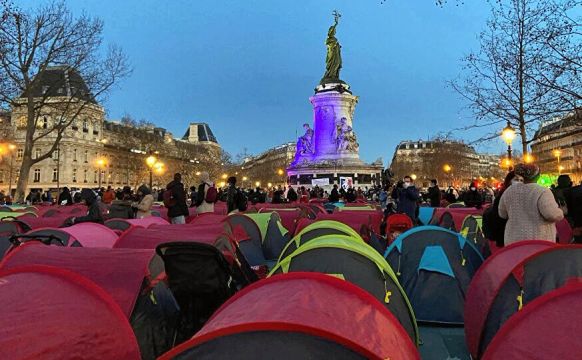 Çok sayıda göçmen derneğinin destek verdiği eylemde Paris'in ünlü cumhuriyet meydanda 400'e yakın çadır kuruldu. Göstericiler "Place de la République'e geri dönüyoruz çünkü sembolik yer ve son eylemimizden bu yana halen hiçbir şey değişmedi. Bu insanlar için bir sığınak bulmamız ve onları barındırmamız gerekiyor, çoğunlukla mülteciler arasında aileler ve çocuklar var, bu insanlar her gece derneklerde çadır veya kalacak yer ararken, birçok vatandaş onlara geceleri kapılarını açıyor, dedi. Bu insani soruna Fransa'da hükümet tarafından acil ve istikrarlı bir çözüm bulunması gerekir çağrısında bulundular."
