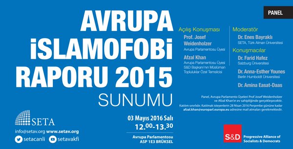 Siyaset Ekonomi ve Toplum Araştırmaları Vakfı (SETA) Avrupa Araştırmaları Direktörü Yrd. Doç. Dr. Enes Bayraklı, Fransa'da İslamofobik saldırıların geçen yıl yüzde 500 arttığını, Almanya'da halkın yüzde 61'inin İslam'ın Batı'ya uymadığını düşündüğünü, yüzde 57'sinin Müslümanları tehdit olarak gördüğünü belirtti.