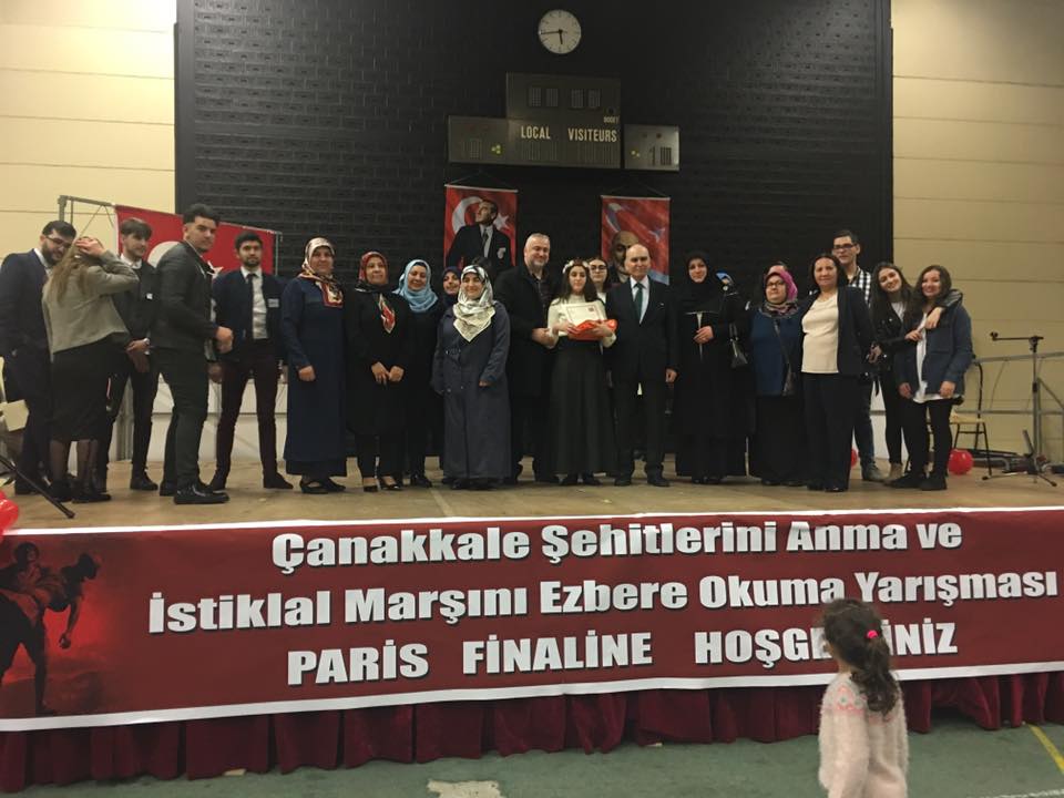 Paris Başkonsolosluğu görev bölgesindeki sivil toplum kuruluşlarından Roubaix Eyüp Sultan Derneği, Lille Okul Aile Birliği ve Lille Türk İşçileri Kültür Derneği tarafından 5 Mart 2017 Pazar günü Wattrelos’ta “Çanakkale Şehitlerini Anma ve İstiklal Marşı Ezbere Okuma Yarışma Finali” düzenlendi.