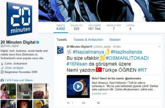 Türk Hackerler binlerce Twitter hesabını hacklediler. Hacklenen hesaplar arasında İsviçre’nin etkin Gazetelerinden birisi olan 20 Minuten Gazetesi’nin Twitter Digital hesabı oldu. 20 Minuten Gazetesi kısa süre sonra hesabını geri aldı ve Twiiti sildi.